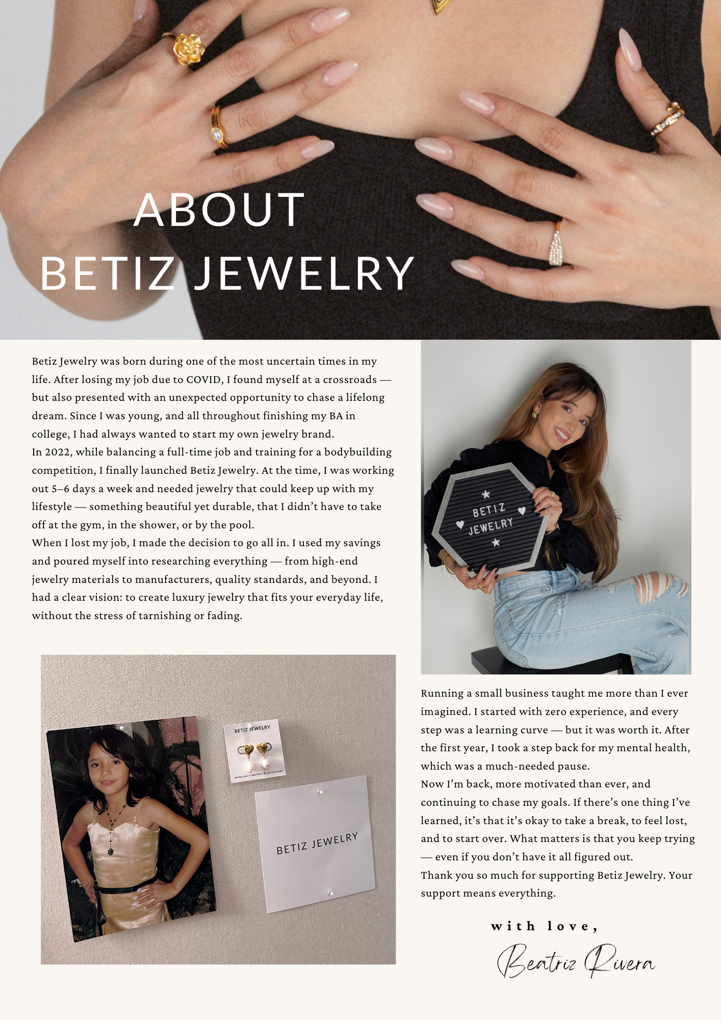 - Refunds are permitted only if the item is damaged upon arrival. Store exchange is available. Please contact us at betizjewelry@gmail.com if you have any issues or concerns with your order or the product(s) you received.